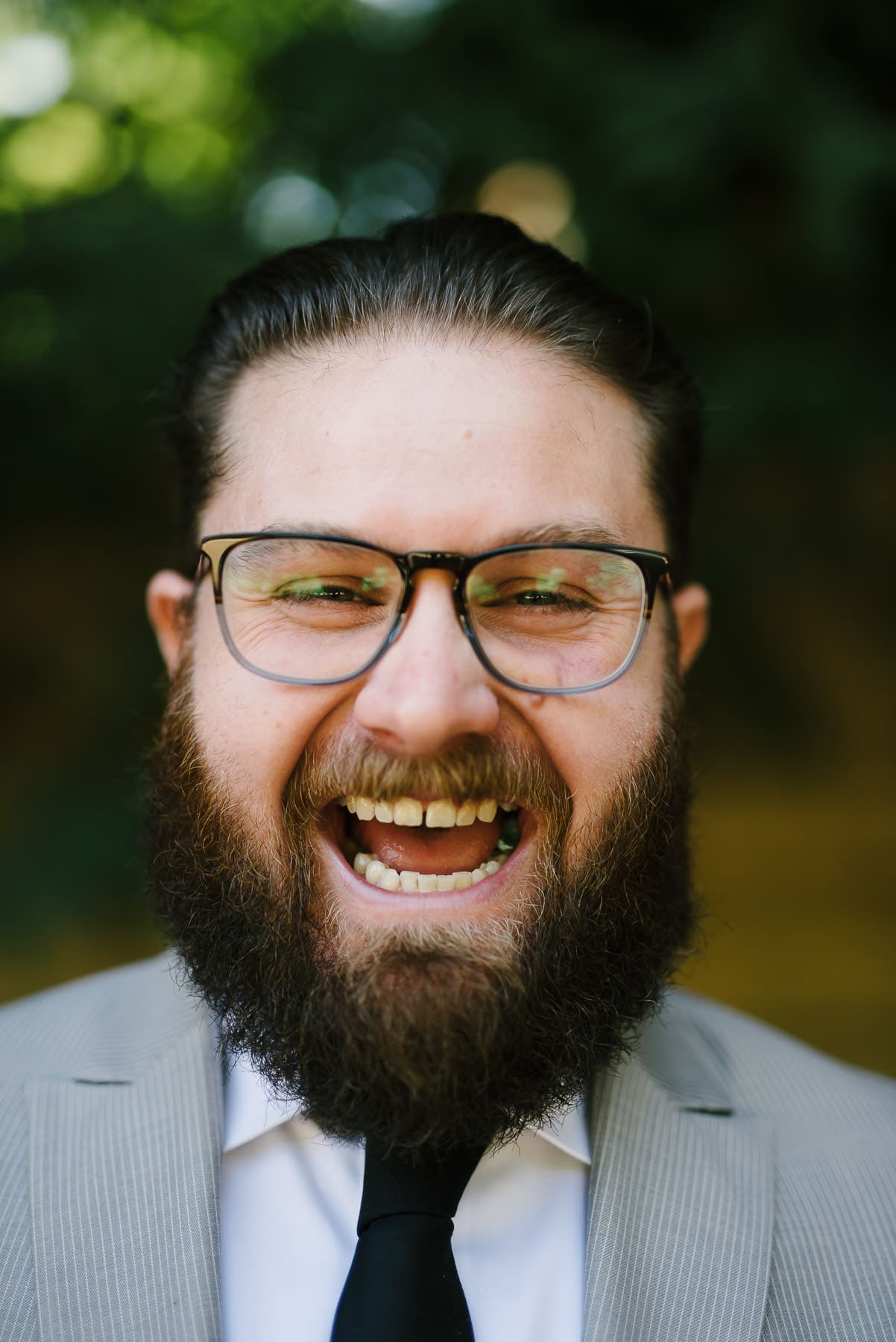 After everyone was dressed and ready, we did a first look and portraits just down from the lodge. I always try to keep things close and easy for people, and this meant doing pictures on the side of the road. The light and background were good, so I went with our unusual portrait location. It was fun having neighbors and visitors drive past and wave as we took pictures.