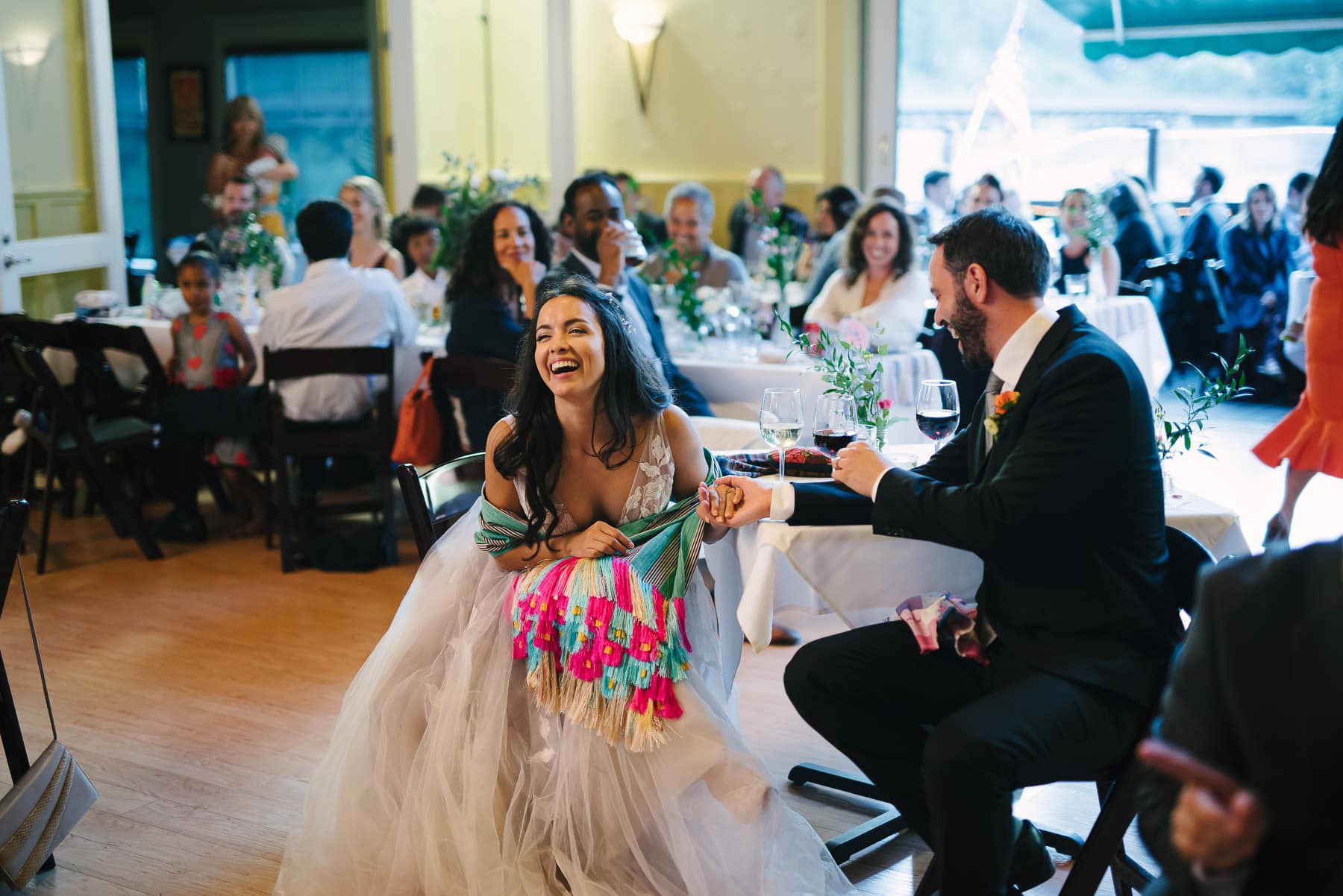 Lunarosa and Leo’s Highland Dell Lodge wedding in Monte Rio on the Russian River was a sweet, intimate, and fun affair. They got ready in rooms that were about 10 feet away from each other and had their ceremony in a park within walking distance of their reception venue. Just like Dawn Ranch, the Highland Dell Lodge was also affected by the flooded river in the spring of this year. However, unlike Dawn Ranch, the Highland Dell Lodge was able to fix the flood damage in time for this wedding season.